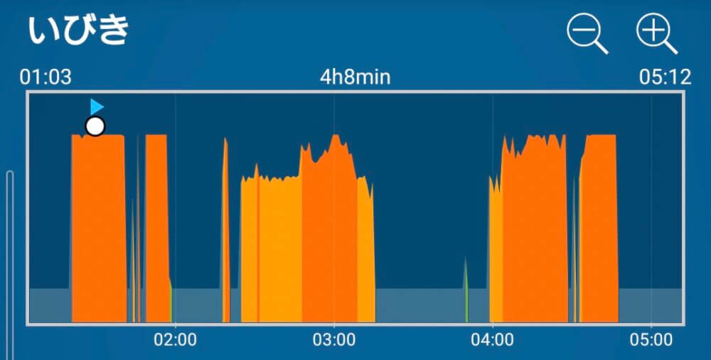 4時間のうち、どのくらいの時間イビキをかいていたかグラフになっていました。