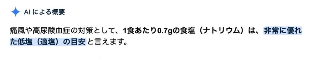 googleに「痛風にとって0.7gの塩はどうですか?」と訊いたところ