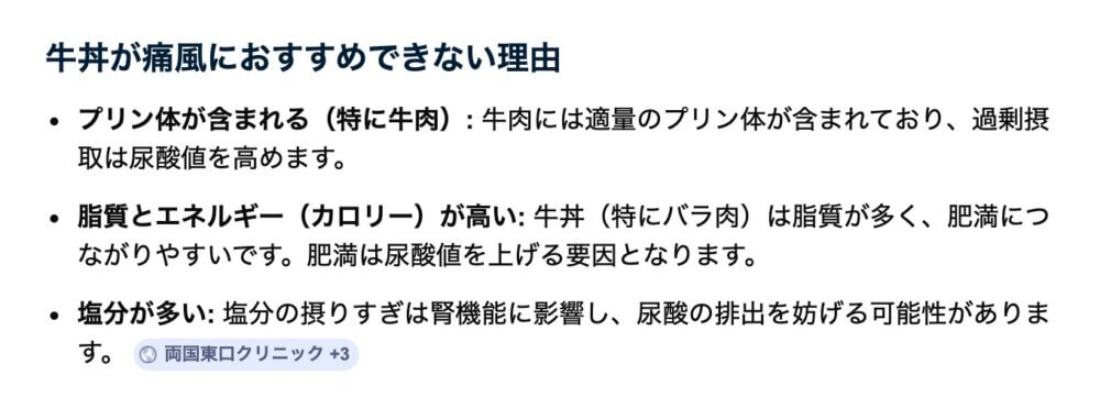 牛丼を頬張りながら、これって痛風的にどうなの?とAIに訊けば、
