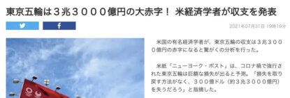 オリンピック、3兆3000億円の赤字だって。 Sun, Dec 21, 2025