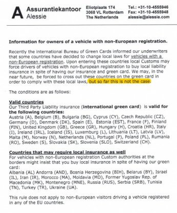 ヨーロッパの車の保険「グリーンカード」は、Alessieがいいかもしれない。 Sat, Mar 28, 2026