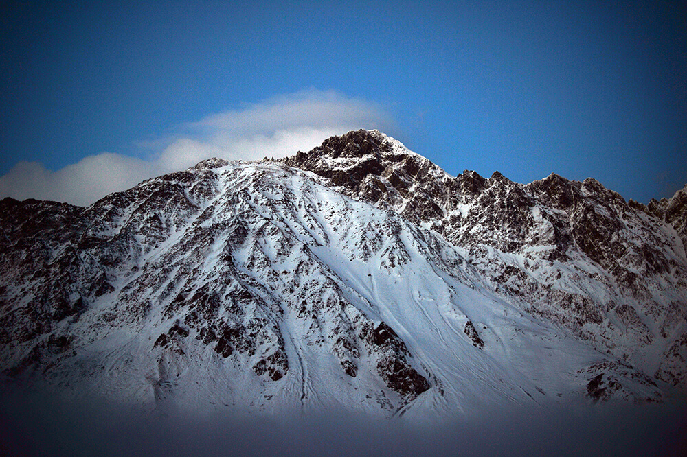 明日、目の前の↓山脈を越えるわけですが、山頂が雲にとけるほどに高く険しく、どう見ても無理そうな。