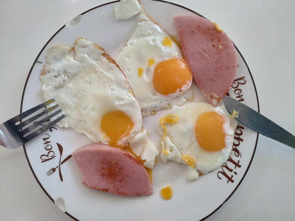 ロシアの朝定食は、たいてい卵3個です。