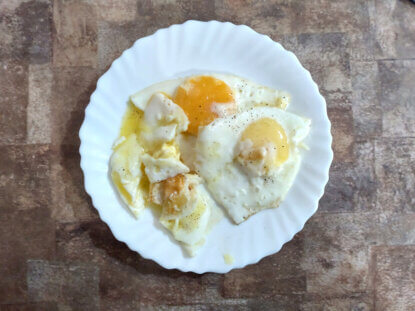 ロシアの朝定食は、卵焼き3つです。 Sat, Apr 19, 2025